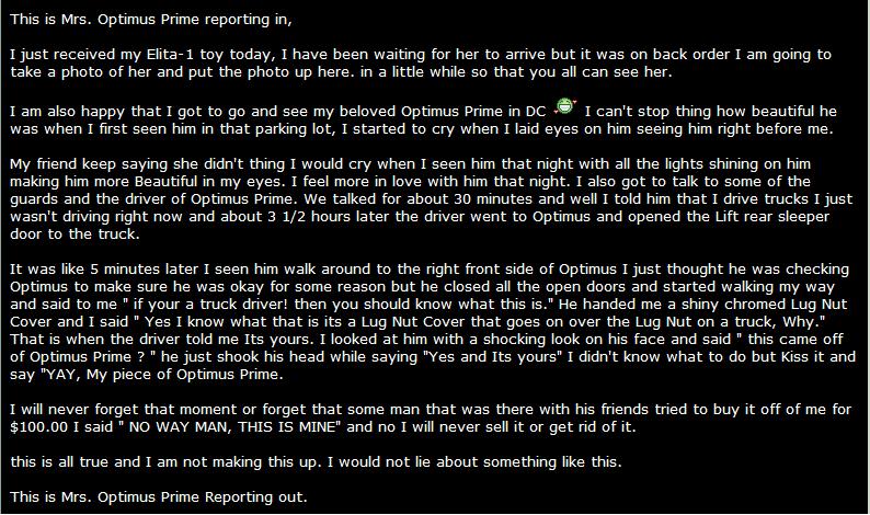 Her lies about how the driver gave her the lugnut, which turned out to be nothing more than lies.