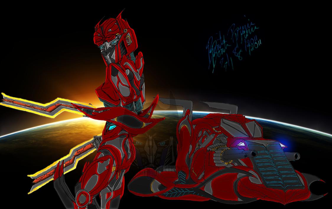 Here is Causeway, the slut in her vehicle form and her bipedal form, with two pathetically drawn energon swords. They don't even look like swords!