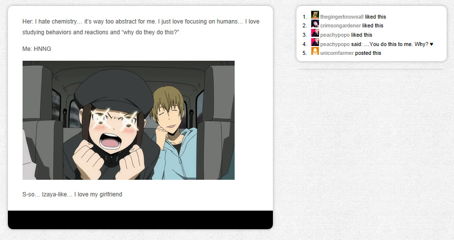 Chemistry's too abstract! Psychology's the way to go! Supa kawaii like Izaya-chaaan.