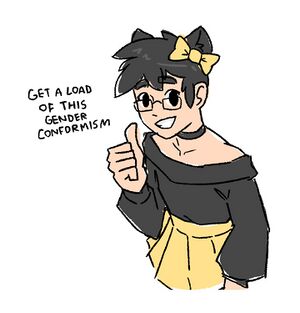 Joseph Catalanello (abv. JoCat) is a neko gaymer twink with a penchant for DnD shit and a non-limited admiration for muscular women. Despite knocking off pretty much all the criteria for being a queer, he still insists that he is not gay in spite of his various feminisms; undoubtably a perk he acquired leveling up his skills in the illusionary arts. As a gender non-conforming twink, he also seeks to assist his transexual companions pass as something they're not with the assistance of said illusionary magick and virtue signaling, although its still not quite clear if they are among the types of "women" that JoCat would be attracted to. JoCat is best known for releasing his hit single, "I Like Girls", a song so heterosexual that it somehow makes liking girls seem gay.