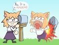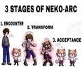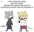 Neco-Arc is that fucking cat from the Tsukihime games. Nobody has actually played those games nor does anybody really care about them, although her quirky demeanor has made her a beloved character within internet meme culture. Neco-Arc embodies the spirit of chaos and thus can be seen committing acts of domestic terrorism for the lulz. Neco-Arc has also become famous for her AI music covers.
