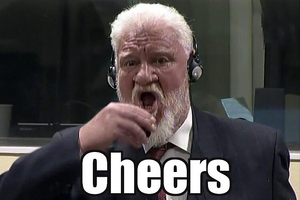 Slobodan Praljak is a case of political an heroism in The Netherlands; being the first televised suicide of a political figure in a court room since Budd Dwyer. Slobodan Praljak, a Bosnian who defected to fight for the Croatian Armed Forces, who, true to his roots in the powder keg of Europe, became a war criminal, hence this predicament he found himself in. Slobodan Praljak promptly downed a shot of cyanide that he snuck into the court room in order to avoid getting his geezer bumhole ruptured by vengeful Bosnians.