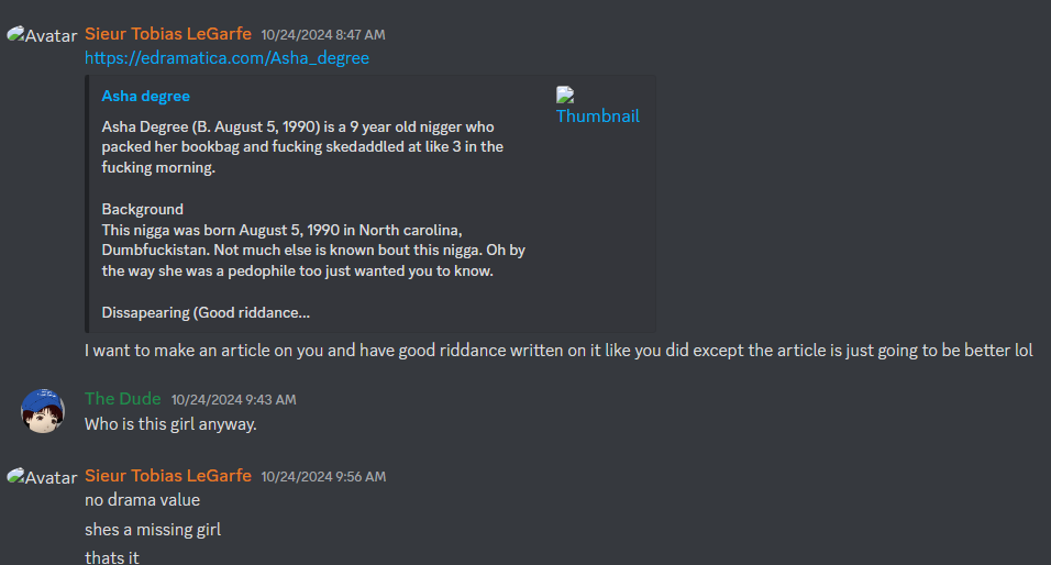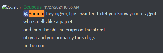 | 22:43, 25 April 2026 | Iforonehatethisnigger.png (file) | 97 KB | File uploaded with MsUpload | 1 | |