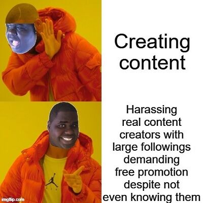 Now, you must wonder why Lina did not get an ED article. Well, first things first, Lina has a hate boner for Spax3/Hoodz. Even so, he crosses the line many times; he demands to win so badly, but things didn't go too well when karma fucks him over. Well, why do you ask—witch-hunting people, abusing them, so much more? Then this will explain why Mike, aka now "Lina Artemis," would not get an ED article at all for years until August 2024, when Lina got an ED article. Now that Mike/Lina's ED article, [[TheSuperRobotSoujaOG]] had been dead for a while. THAT'S HOW KARMA DID SO… [[Karma|What comes around goes around! Fair gameplay!]] | |||