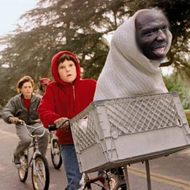 E.T. (The Extra Terrestrial) is a magical film about an alien, whos parents hate the fucking sight of him, so they do a "Maddie", dumping him on earth. He then goes on to befriend a young boy called Elliott, before fucking off home.