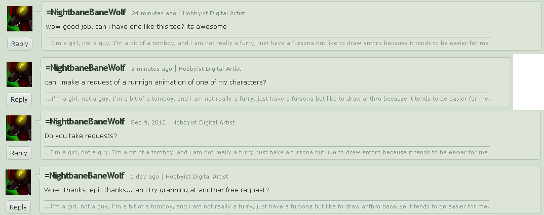 Nightbanewolf / wolf_punk demanding more free art, as usual.