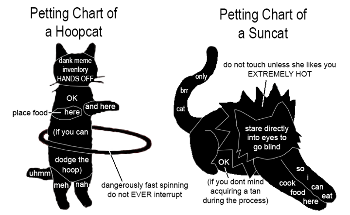Proper petting instructions for Hoopcat and Suncat.