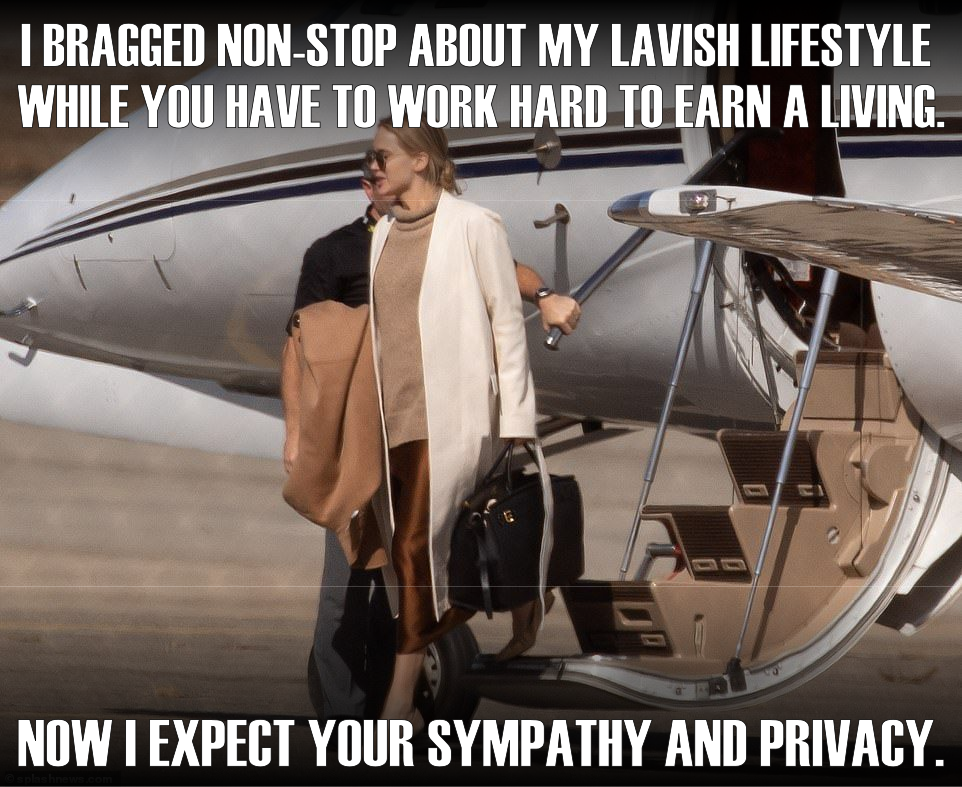"I bragged non-stop about my lavish lifestyle while you have to work hard to earn a living. Now I expect your sympathy and privacy."