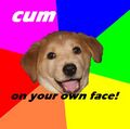 Wandering onto /b/ in the Summer of 2008, the so-called Advice Dog (also known as Persuasive Puppy, Advice Puppy, Bad Advice Dog, Subversive Dog, Wisdom Dog, Danger Dog, Crafty Clever Canine of Conscience Corruption and that fucking rainbow dog) came to /b/ to grace its ignorant and misguided inhabitants with His infinite wisdom. Set in front of a bright, nearly hypnotizing background, the dog is a trusty sage who arms anonymous with knowledge.