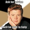 A horrible mutilation between Advice Dog and Rick Roll. Recently new, he was conceived on FanArt Central. There are several templates for Advice Rick, so choose wisely.