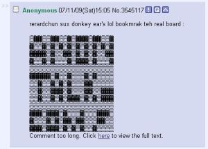 moot never answered. So Kimmo thought, "I'll create the most horrible anonymous BBS ever and everybody will love me. I mean, who are the mods to cooperate with the law and try to keep their site from getting taken down?" And thus, AnonTalk was born.