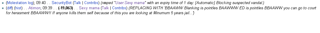 On April 23, 2008, Atimon brilliantly registered on ED ,as "User:Antimon", and replaced her article with “meep!o.o;”. Of course, our EDiots were on the lookout, and the article was quickly reverted by User:SecurityBot. She was so smart about her stealth-delete that she used the same username: User:Atimon. Go have fun vandalizing her userpage. Later, there were several attempts of vandalizing it committed by her retarded fanbase (or most likely by her), which caused the intervention of the SysOps, and resulted on the article being locked.