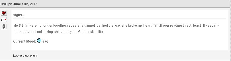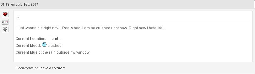 LJ is another site where she writes crappy blogs full of nobody cares about. Unlike MySpace's "how much she hates men" blogs, her LJ blogs focuses moar on her emo side.
