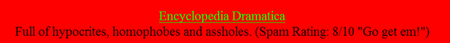 BLT has shown a considerable 'hatred of Encyclopædia Dramatica' and they even claimed it is "Full of hypocrites, homophobes and assholes" on their hate list, a page consisting of three links including one Last Measure. Oh noes. BLT threatens to bring down ED using their mighty army of three people, two of which have internets connection. Anyone who critises them is treated to a bitching rant such as this reply to Sheneequa: