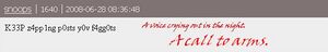 Using complex Al Gore rhythms, some ninjas, Computer Science III, and a crosseyed gerbil named Ruprecht, banniNation allows community moderation with lots of numbers. Contrary to other knobs that turn to 11, when your bN knob is turned to -3 you get a STFU Index. Other ways to get STFU'd noob is to have kew submissions voted as spam. One of the punishments for a high STFU Index is disemvowelment. Most notably demonstrated first by tass. After being voted down repeatedly, his first post was "dchnzzls."
