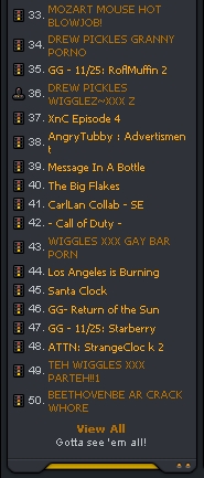 Not being the video above these, these kind probably should be uploaded more onto Newgrounds and YouTube. They love it when they see non-banned barney porn (cuz it gives them teh boners). Videos involving real nasty hardcore gang bang xxx features have always won.