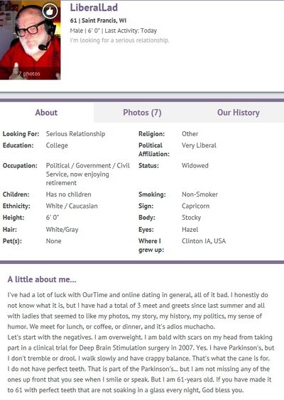 LiberalBill on OurTime a/k/a pedophile, stalker and sociopath Bill Schmalfeldt.