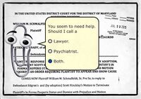 After weeks predicting that the defendants would default, Schmalfeldt's prediction turned out to be typical bullshit as an attorney for defendants appeared and filed a shitload of lulzy motions: