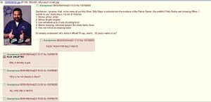 On the night of August the 5th a post was started by a /b/tard to honor dear Billy by moving him into the official rank of Patron Saint of Holy Relics and Amazing Offers. He was honored and all was good. Much cocaine was snorted, and many heart attacks were to be had.