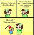 • It's "that time of the month" when "I'm not at my best" because "my vagina is bleeding."