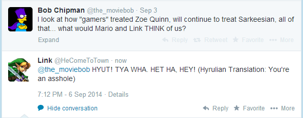 He was soon replaced by "lizzyf620", a female gamer and GamerGate supporter that was doxed and trolled off of Twitter by his friends a few days ago and only came back from exile to take his job. Thankfully, being replaced by a women should probably make Bobbo happy, since he's so progressive n' all.