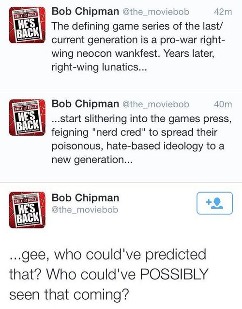 After the firing, Bob stayed relatively quiet for a few days before going on a psycho rant on Twitter about how gaming has been taken over by a right-wing conspiracy that has not ended to this day.