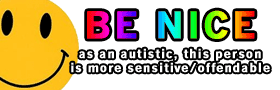 These people have Assburgers Syndrome, so you can't say anything bad! :-( Be aware of that, you insensitive fuck. |