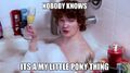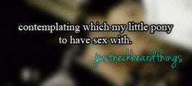Even the furry "community" doesn't make up such asinine bullshit as this. These "memes" and "catchphrases" are really just a series of gore-esque failed abortions spewed out of the mouths of inane ponyfags desperate to make their sexual deviance look more like a "culture". A culture so loosely tied together that it looks as if its web of lies is about to fall apart at any moment? A culture so inconsistent that everybody has a vastly different opinion on everything from clopping to shitty fanfics? Ponyfags are often seen saying one thing retarded, saying something more retarded to their friends, and then doing the most fucktarded thing possible. For example, A ponyfag often says that they have nothing against cloppers. "To each his own" is the typical catchphrase. But then, they meet up with fellow ponyfags and start talking about how fapping to ponies is disgusting. But even after that, they go ahead and fap to ponies anyways. Reminds you of someone huh? So that's it? Ponyfags are just as bad as furfags right?