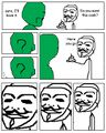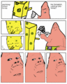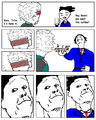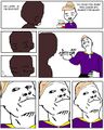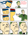 In response to the video, an eleven from Futaba made his own comic strip version of the scene, depicting Konata as Professor Himonya, Kagami as the interviewer and a choco cornet being crushed in place of the card. It was translated, and the comic and video circulated around /a/ for a while. The meme truly took off when an /a/sshole decided to make his own MSpaint version of the comic, featuring Simon, Rossiu and the core drill from Gurren Lagann. Shortly after, an Oh Exploitable template was made, and the meme took off on /a/. It also eventually made its way into /v/ and finally migrated to /b/ as is that sum Original Content