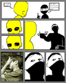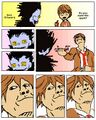 In the spinoff strips, a character usually holds something of immense value for the second character, before crushing it front of their face, followed by a zoom-in of the trademark facial shot.
