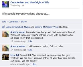 Chad seems to talk a lot of about the moral issues involved with having your daughter fuck a horse. By the way he goes on about it, we have to wonder whether or not he really has a secret desire to either fuck a horse or be fucked by one.