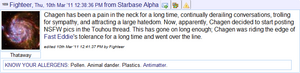 This TVTropes rip-off site was Chagen's refuge after his ban, and in under a year he would make over 700 threads and nearly 7,000 comments on this site. As with TVTropes, Chagen was not afraid to