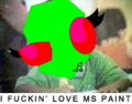 70% of the artwork that followed was retarded corruptions of the cartoon Invader Zim. A further 20% are pictures of her, either crying or cutting herself (SRSLY) and the remaining 10% is unadulterated crap. Most of her fans have long since evaporated since Anonymous (and ED) buttfucked the shit out of her comments section. If you contributed to said anal ravishment, you are a pretty cool guy. These Anonymous and EDiots soon exposed the truth behind her art, and befoar long it was revealed that 60% of her artwork was stolen from Google, and staring at her pictures for too long will kill the majority of your braincells. (I'm not just making these statistics up you know.) Cheese1997 is probably poor, as she can afford paint (probably finds it in an alley), but she can't afford an operating system that has Microsoft Paint.