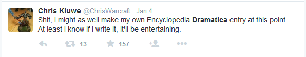 Here you can even see Chris deliberating the old age custom of desperate attention whores that no one cares about we like to call "Writing Yourself Into An Article".