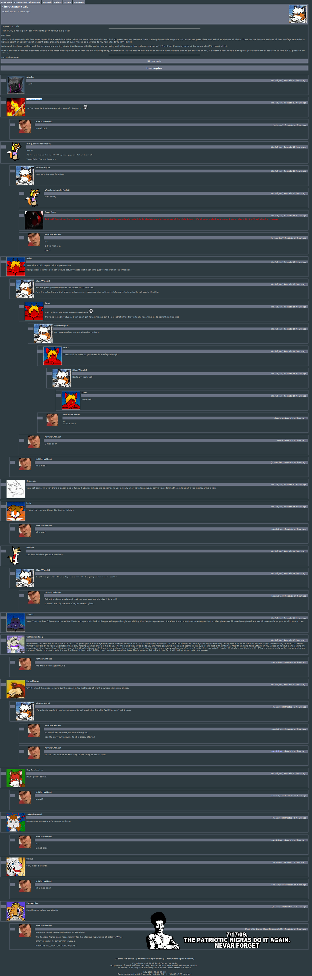 Despite anal invasion being a life-long dream of Cid's, on July 16th 2009, Cid Silverwing found his dox at the feet of the Patriotic Nigras.