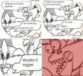 For those special moments when "NIGGER" just WON'T suffice, DOUBLE NIGGER is THE BEST meme on the planet. Originating in /v/, it somehow managed to get stolen by /b/. It originated as a scan of a children's Sonic the Hedgehog joke book (from the good old days before he turned into an animé faggot) and, after subtle editing in MS Paint, demonstrated endless possibilities in replacing Robotnik's speech with creative orgies of profanity. Off-shoots of the meme were taken from other pages in the comic book, thus feeding the Internets with more lulz. Even more lulz were had when /b/ began posting full threads of IRL multiple niggers.