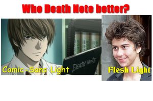 • Light Yagami: Also known Kira, Light Yagami is the protagonist of Death Note, and has a strong obsession with becoming a god. At first, no one wants him to be god because they realize his last name spelled backwards is "Im a gay" and if America can't have a black guy for president (TOO LATE), they aren't going settle for a faggot. It should also be noted that the anagram of "Raito Yagami" is "I am a gay riot." When he first meets L on his graduation day, he finds it awkward that a guy so hot and sexy is sitting next to him, so he immediately seizes the opportunity and starts hitting on him. Since L is goatse, he takes this as a come on "just as friends" and later gives him a foot massage. After L realizes Light was actually gay, he fakes his own death, and goes on a vacation to Disney Land. Light then takes Misa as his girlfriend to cover up his homosexuality. He gets pwnt by Ryuuk as he no longer bore the sufficient amount of lulz to please the bored Shinigami.