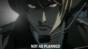 Whenever a certain thread or argument comes up on 4Chan and Anonymous tricks some poor fucker, there will always be a picture of Light with an evil look on his face from one of the episodes (or manga) with the caption, "JUST AS PLANNED." Or, if things go wrong, there is always a shooped image of Light frowning and the words replaced with, "NOT AS PLANNED."