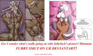 deviantART, which doesn't even try to hide its homosexuality and furry art, is but yet another kingdom to all childhood memories raped and basically is just filled with Furries, Pedophiles, Perverts, Azns, Wapanese and everything worse imaginable. What you'll most likely find is attention seeking porn for page views sake and bad, shortly written, unimaginative, out of character fanfiction. There is no shortage of Rule 34 on that site.