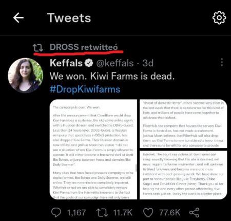 He has one now, but that doesn't change that he is butthurt about having an article here (It is known that Dross is one of those weirdos who like to google their names to see what people write about them on the internet, that's how he knows about his Kiwi Farms thread).