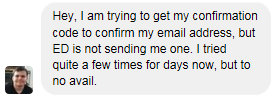 Also it might be good to have a support e-mail button somewhere on the site, cause people keep going on the random ED FaceBook pages looking for help.
