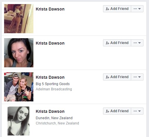 Do you all think that any of the other Krista Dawsons in New Zealand would give me permission to post the name "Krista Dawson" here on ED? Krista Dawson doesn't seem like that rare of a name, I'm sure I could probably find at least one Krista Dawson who would grant me the right to type the name "Krista Dawson" on the internets. — GirlOnInternet 16:49, 25 October 2016 (EDT)