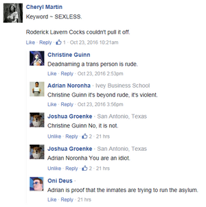 I wasn't aware that including someone's name in an article and linking to their Facebook was "illegal". Wat do? — GirlOnInternet 11:32, 24 October 2016 (EDT)