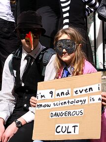 Epic Nose Woman wonders if it is safe to hold up a placard saying "SCIENTOLOGY IS A DANGEROUS CUNT".