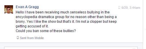 A well-known fact of the internet is that bronies never learn. As an asspie-riddled virgin with rage from the Great State of Texas, Evan Gragg doesn't understand one bit why all bronies are hated. In addition, he is also a Bible-thumping libertarian socialist, who has no concept of how government works (which is typical of libertarians and socialists) and sticks to either his Christian, Aspie, or brony hugboxes when he meets people he doesn't like. He also churns out self-inserted Dragonball Z and My Little Pony OCs like no tomorrow and cries whenever nobody likes them.