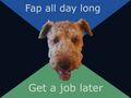 Fap Dog is a horrible Forced Meme. When looking at the dog it forces you to fap over 9000 times while giving you advice about fapping. Oldfags raged this Forced Meme was created. The owner of the dog wanted it to become a meme of Advice Dog but fapdog still sucks.