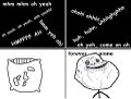 Forever Alone Guy (Also known as F.A.G.) is the only rage-meme that accurately and eternally represents you. This meme is one of many, many hilarious and inventive variations of rage-comics, created somewhere around April 2010. The stories are usually focused around main character with abnormally swollen face, which expresses loneliness and disappointment with his life (in which he is alone). Some of them also includes wannabe-funny word games with main line, which has nothing to do with actual plot. Next to highly overused RAGE, FA also draws its humor from such phenomenons like Trollface, FUCK YEA or Poker Face, and can be easily replaced by almost any of them.
