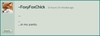 She then put up a journal exposing the "evils" of the trolls, and all the mean things they did to him. This brought about much lulz, and resulted in her getting trolled herself quite a bit. She later discovered another lolcow, FurrMetalAlchemist, and constructed a journal about her also. This didn't help little Foxy, who began to BAWWWW uncontrollably into her journal.