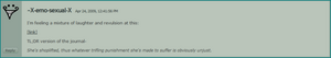 X-emo-sexual-X. His two submissions depicting the lulz cow got this new white knight's attention and soon it was found leaving some rather confusing comments on the deviations.