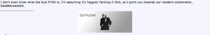 Also, despite the one-time presence of a "Furry Concentration Camp" subforum, posting racism on SA is now a bannable offense unless the person posting it is a mod/admin, in which case objecting to racism is a bannable offense.
